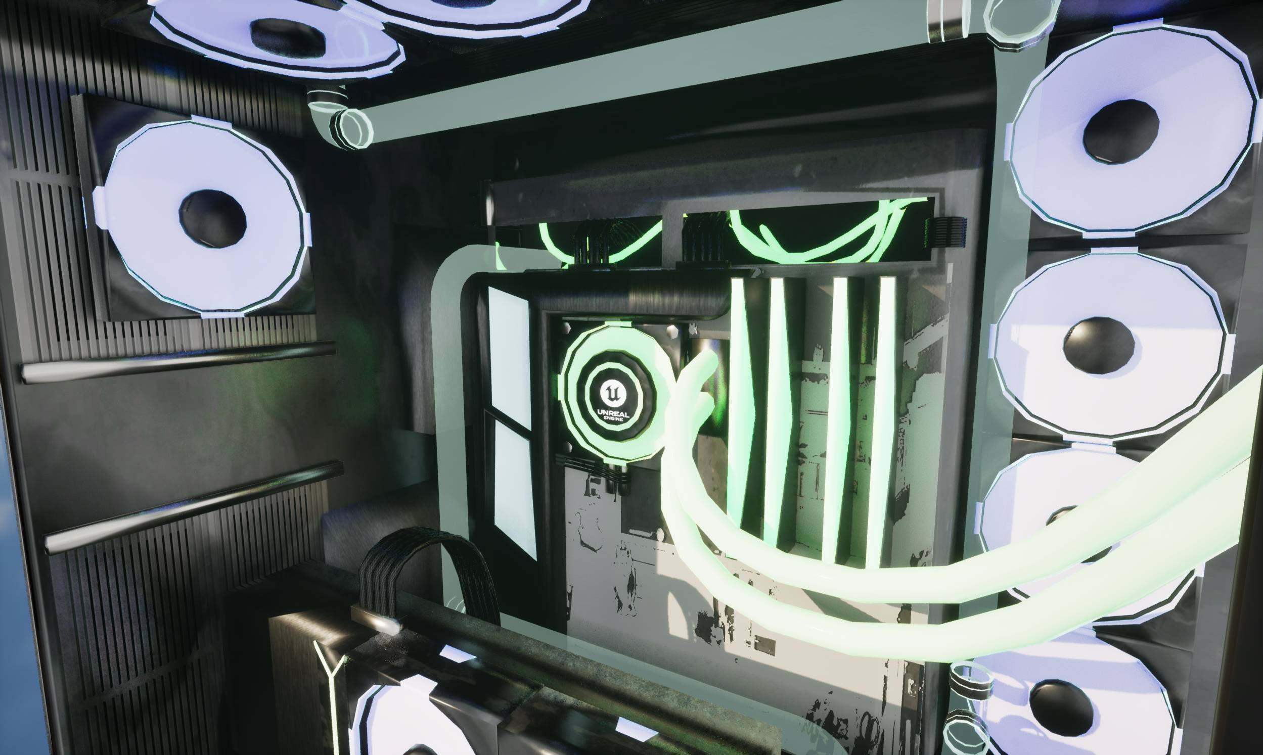 Set RGB Lights to function and switching to pulsating different colour while also being able to set Glass material and Currently Thinking whether I need to redo Texture for the metal PC frame and the ventilations for the contrast. Setting Up Redoing Water Cooling tubes, Metal Pipes and Remodelling some SSD Cards, fans and etc to make sure total Polygons can make use of all 3,000 triangles. Made a Screw, Exactly 3k Now.
